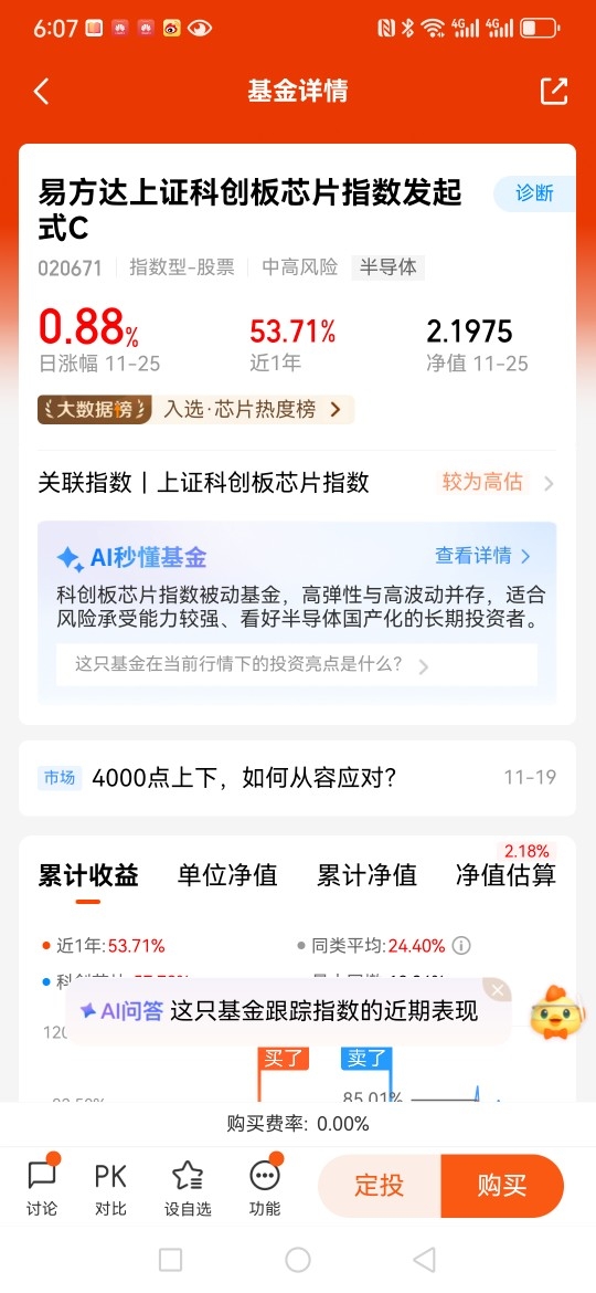 11月26日,今日芯片板块震荡上行,$易方达上证科创板芯片指数发起式C$ 涨幅2.18%,已经连续上涨三天,有重拾升势的迹象。而且,芯片产业的长期向好逻辑并没有改变,经过前期大幅调整之后还有很大的上升空间,长线可以选择坚持定投即可。