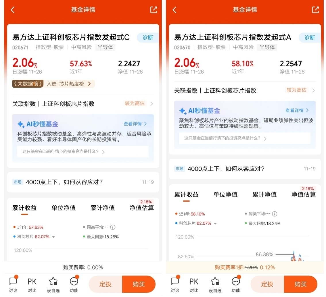 大A目前虽然在4000一线遇阻回落,但近几天芯片整体表现还是非常亮眼的,比如今天$易方达上证科创板芯片指数发起式C$ 就在昨天大幅上涨情况下依然继续上涨2.06%,真的让人大呼“爽”,强势表现一览无余!