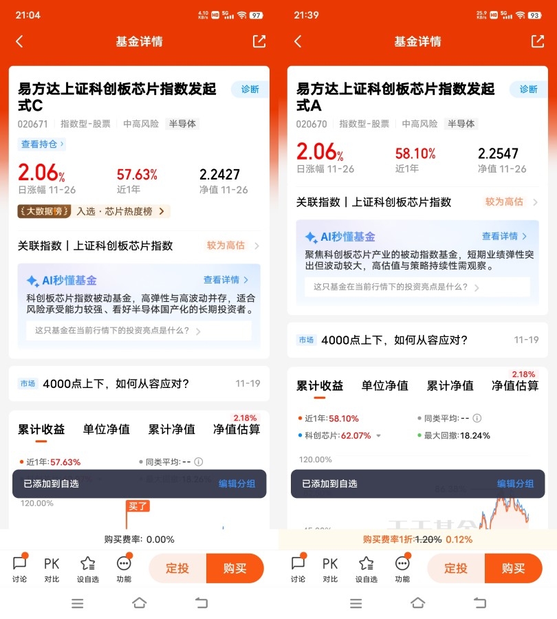 11月26日,$易方达上证科创板芯片指数发起式C$基金日涨跌幅达2.06%,最新
