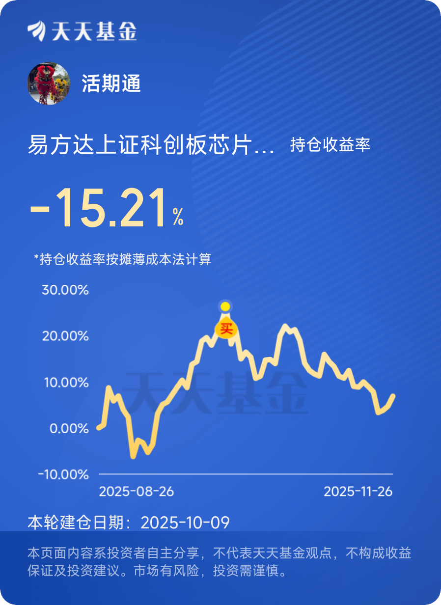 11月26日,第十一天打卡发帖,今日科创芯片表现突出,$易方达上证科创板芯片指数发起式C$ 大涨2.06%,在市场波动中,科创芯片板块凭借坚实的产业逻辑与政策支撑,展现出高弹性特质,今日2.06%的上涨既是短期利好的集中释放,更是产业发展趋势的必然体现,未来在AI算力需求持续升级与国产替代不断深化的双重驱动下,芯片赛道有望持续成为资本市场的核心关注焦点。@易方达基金