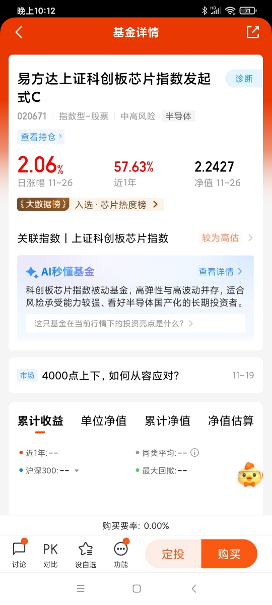 11月26日,今天AI硬件大涨,$易方达上证科创板芯片指数发起式C$上涨2.06