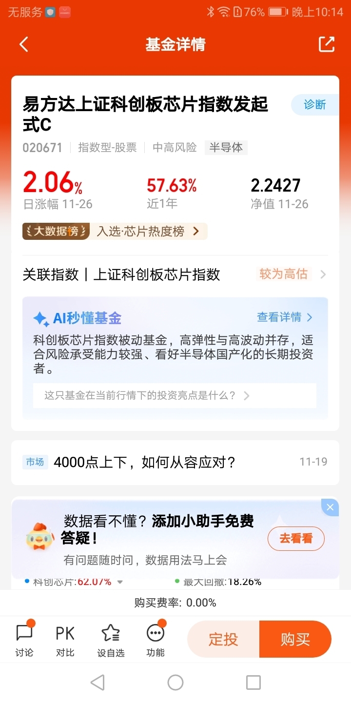11月26日,$易方达上证科创板芯片指数发起式C$今日上涨2.18%,A股三大指