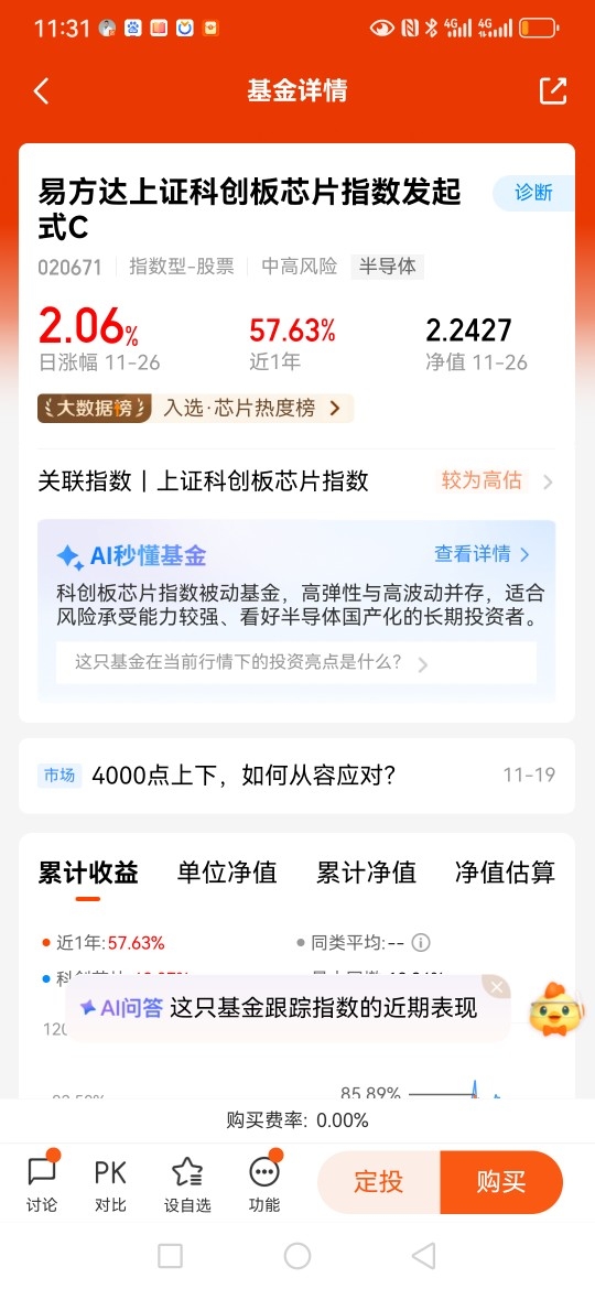 #观点搭子团火热招募中!# #热点话茬# 11月26日,芯片指数强势上涨超过2%,有走强迹象,可以重点关注了。理由是芯片行业作为科技赛道的核心之一,是科技自立自强的重要支点,我认为具备长期的发展逻辑。不管是AI算力升级、新能源汽车智能化,还是日常用的电子产品,芯片都是它们的基础材料之一。但芯片企业的业绩波动较大、研发成本也较高。因此,采取长期定投的操作方法才是上策!
