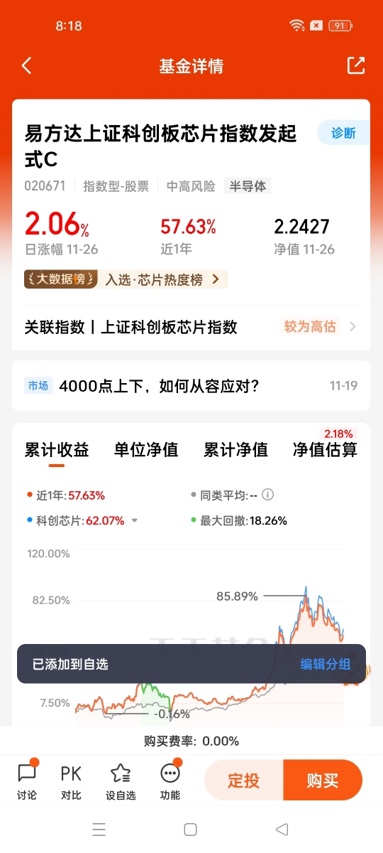 $易方达上证科创板芯片指数发起式C$11月27日科创芯片指数在2472-2561
