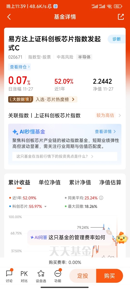 11月27日,第十二天打卡发帖,今日科创芯片表现不错,$易方达上证科创板芯片指数