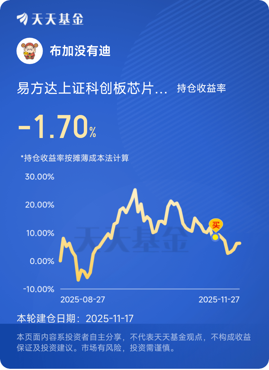 芯片赛道的短期起伏,本质是资金轮动与情绪波动的阶段性表现,核心成长逻辑从未动摇。国家科技自立自强战略下,国产替代与AI、汽车电子等新兴需求持续发力,为板块注入持久动力,而该基金精准聚焦科创板芯片全产业链龙头,一键覆盖核心资产,分散个股风险。作为C类份额,其免申购费、持有7天免赎回费的优势,更降低了灵活布局的成本,适配普通投资者把握调整后的入场机会。看好硬科技长期价值,不妨逢低布局易方达上证科创板芯片指数发起式C,借道专业工具分享产业成长红利。@易方达基金 #晒收益#