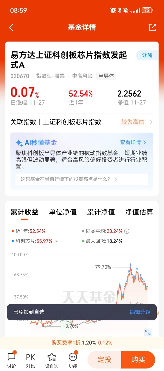 基金的业绩表现同样亮眼,成立以来收益率达126.29%,今年以来涨幅超50%,近一年收益大幅跑赢同类平均。C类份额无申购费,持有7天以上免赎回费,销售服务费仅0.3%/年,低成本优势显著。对于看好芯片行业长期发展的投资者而言,这款基金既规避了个股选股风险,又能充分享受板块高弹性,无论是定投平滑波动,还是波段把握行情,都是布局硬科技的优选。@易方达基金