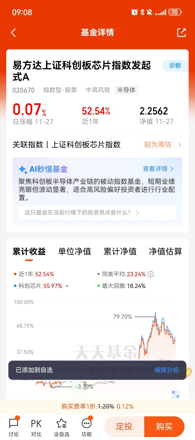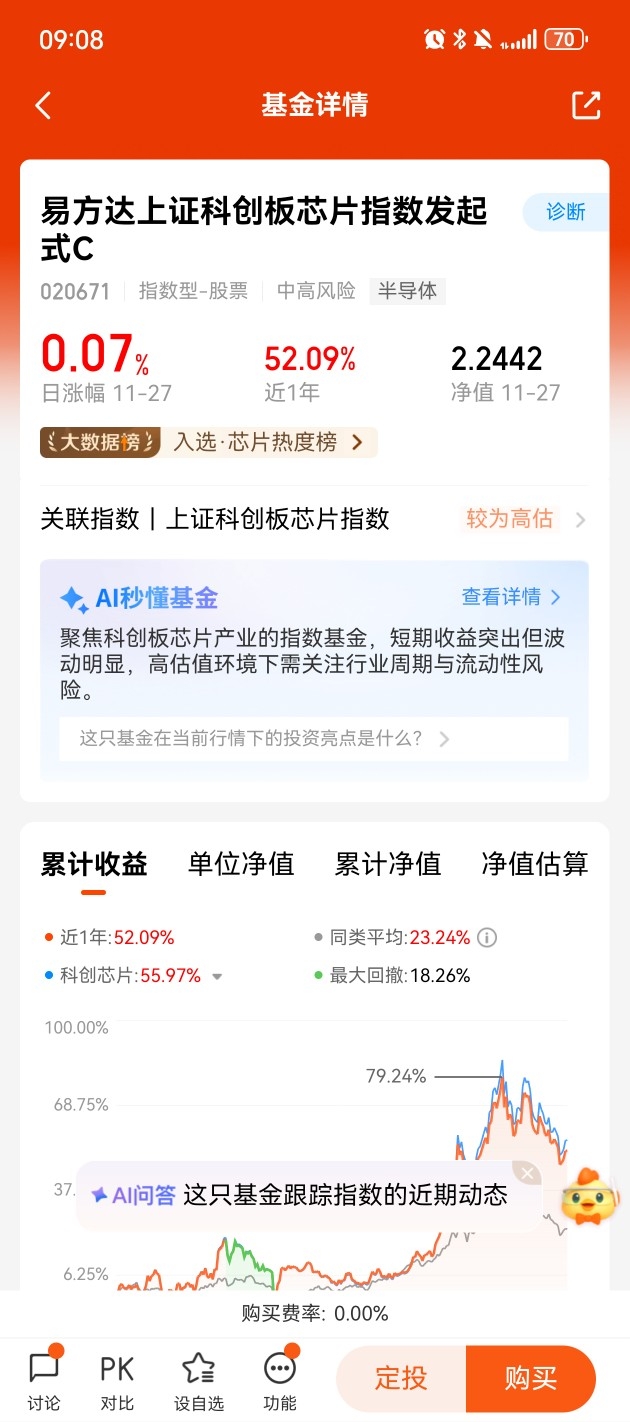 基金的赛道纯度堪称行业标杆。其跟踪的上证科创板芯片指数,成分股均为芯片产业链核心企业,无消费电子、新能源等杂项干扰,从设计、制造到设备材料的全链条覆盖,确保投资者精准捕捉行业增长。截至2025年11月,基金成立以来收益达126.29%,近一年收益51.78%,位居同类前10%,用实打实的业绩证明了赛道的成长潜力与基金的跟踪效率。