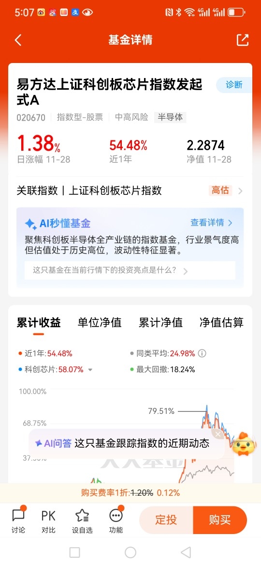 11月29日,本周芯片板块指数大幅上涨4.93个百分点,不过本月表现欠佳,跌幅超过百分之十。虽然这段时间不算很好,但是从今年整体情况来看,今年的科创板整体的涨幅也在前面,而在这之中的芯片,表现也是可圈可点的!个人认为芯片短期波动不改长期趋势,看好半导体周期复苏和国产替代,可以通过定投参与,控制风险,静待花开。