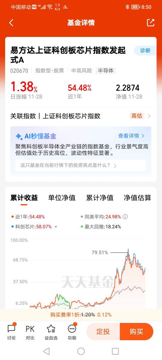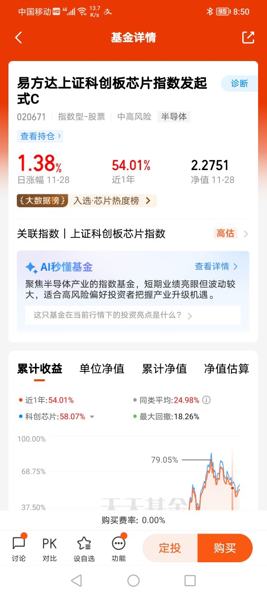 11月29日,本周$易方达上证科创板芯片指数发起式C$连涨五天,下周可以加仓了。