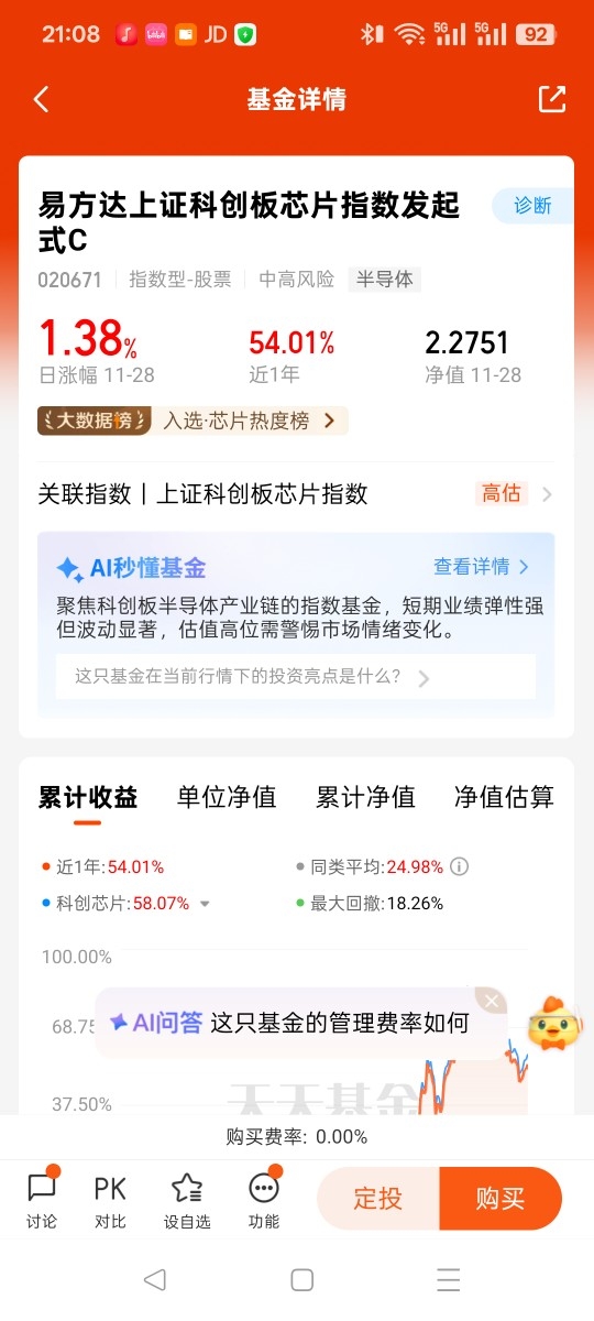 #观点搭子团火热招募中!# #热点话茬# 11月30日,第一篇,本周易方达科创板芯片指数A/C(020670/020671)表现亮眼,周涨幅达4.93%,11月28日C类净值升至2.2751元,单日涨1.38%。驱动因素多元:新思科技发布UCIe 3.0技术,推动Chiplet架构升级,叠加万有引力电子发布国内首颗MR芯片,板块技术突破频现。作为持有易方达双债增强A(固收占比超97%)的投资者,该基金的高弹性可与我的稳健持仓形成互补。@易方达基金