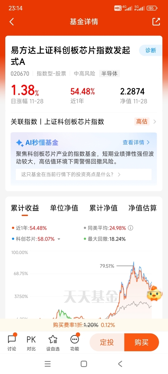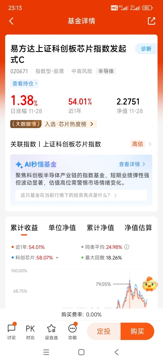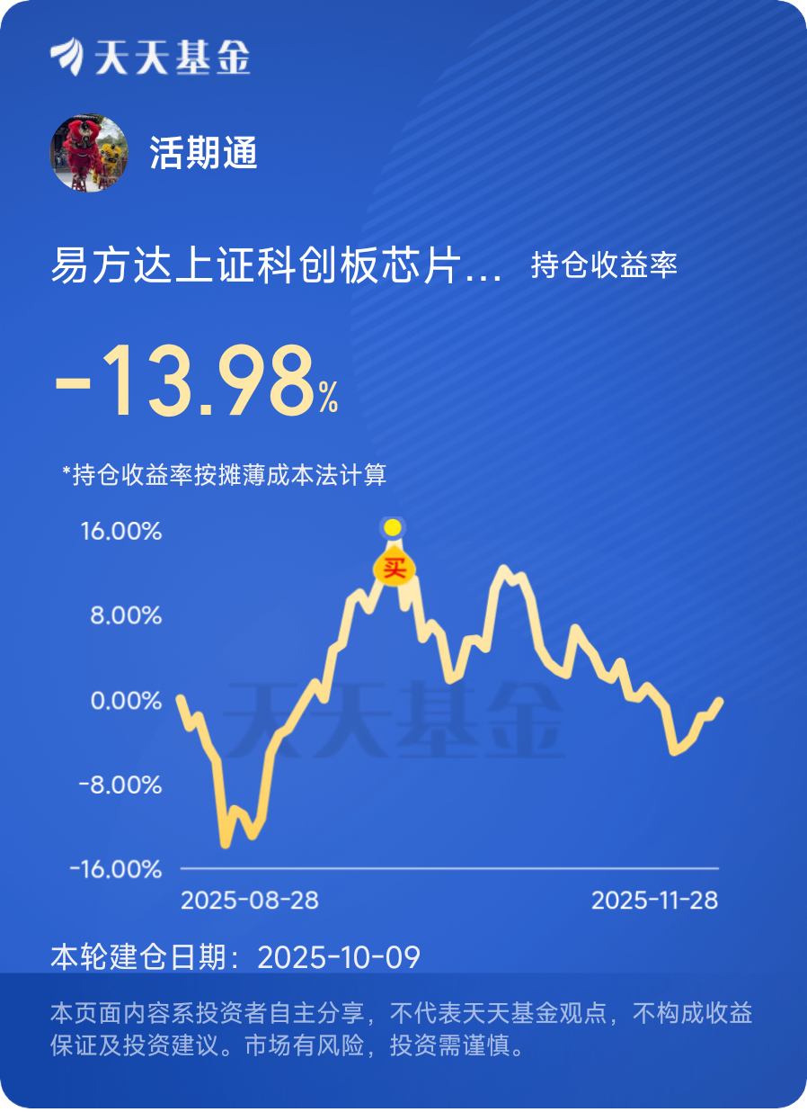 11月30日,第十三天打卡发帖,今日周日,11月科创芯片的投资者怕是有点“emo”,$易方达上证科创板芯片指数发起式C$ 整月狂跌10.23%,有意思的是,虽然指数跌得凶,但“聪明钱”已经在悄悄布局了。相关的科创芯片ETF近10个交易日资金净流入超5300万元,说明不少人把这次回调当成了低价捡筹码的机会。毕竟指数基金跟踪的是整个芯片产业链,覆盖了设计、制造、封装测试等关键环节,只要行业长期向上,短期的下跌就只是账户上的暂时波动。@易方达基金
