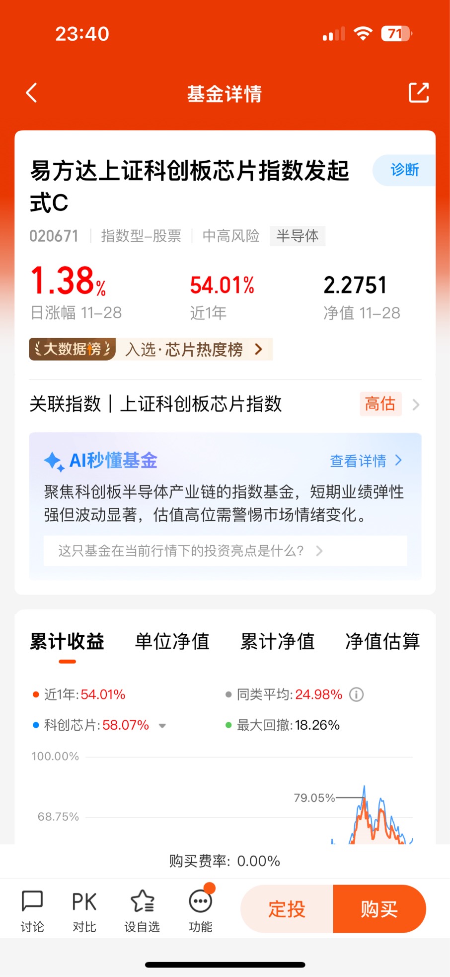 #观点搭子团火热招募中!# #热点话茬# 打卡第2天,11月28日科创芯片指数震荡走高,收盘涨1.46%,成交额超556亿,资金持续净流入凸显市场关注度。AI算力需求与国产替代逻辑支撑板块,明日大概率延续震荡偏强态势,但高估值下波动仍存,需留意量能配合。$易方达上证科创板芯片指数发起式C$
