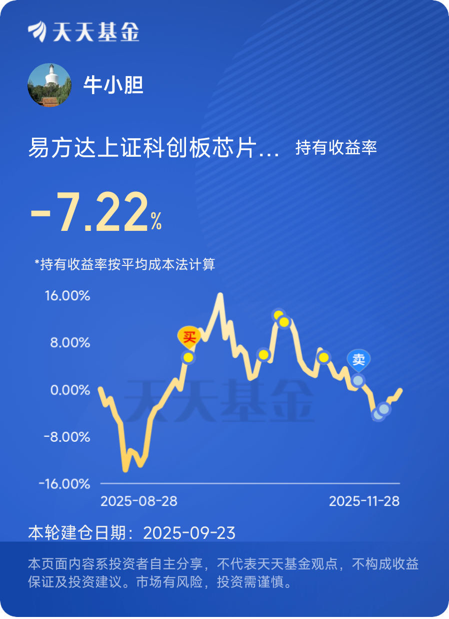 在这个科技驱动发展的时代,硬科技的价值正在被持续重估。科创板芯片指数不仅是一个投资标的,更是中国芯片产业从“跟跑”向“并跑”跃迁的缩影,每一次技术突破、每一个国产化里程碑,都在为指数的长期增长注入动力。而易方达上证科创板芯片指数发起式C凭借其高纯度跟踪、专业管理、便捷操作的优势,成为我布局这一赛道的最佳践行。我始终相信,随着国产芯片产业的不断成熟,科创板芯片指数将持续释放成长潜力,而这份对硬科技的坚守,终将收获时间的馈赠。@易方达基金 $易方达上证科创板芯片指数发起式C$