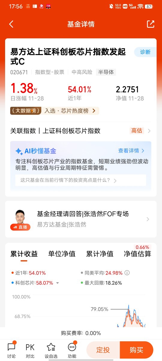 12月1日,芯片板块今日走势分化,AI芯片、半导体材料方向领涨,消费电子芯片板块略显承压,主要受短期终端消费市场波动影响。我持仓的易方达上证科创板芯片指数发起式C今日微涨,复盘后认为板块结构性机会凸显,长期来看,AI算力需求爆发、汽车芯片渗透率提升将持续带动行业增长,后续计划保持现有持仓,重点跟踪细分领域龙头企业业绩表现,聚焦高景气赛道投资价值。易方达上证科创板芯片指数发起式C$易方达上证科创板芯片指数发起式C$