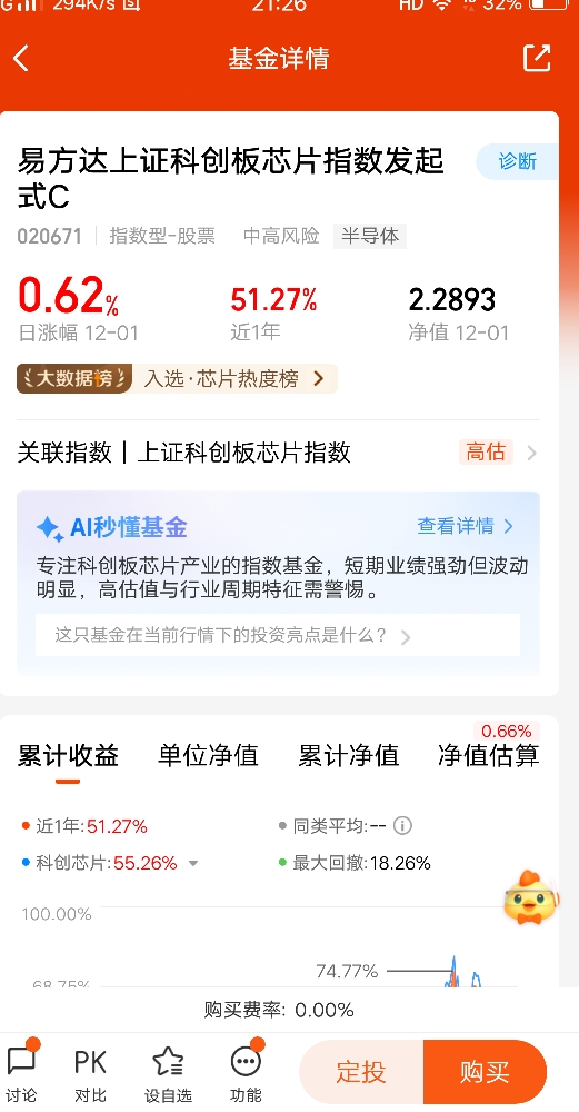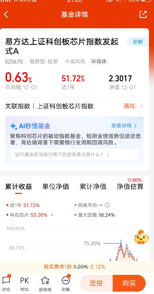 12月1日,今日芯片指数上涨,已连涨六天。A股三大指数今日集体上涨,沪指收复3900点整数关口。截止收盘,沪指涨0.65%。深证成指涨1.25%。创业板指涨1.31%,行业板块多数收涨,消费电子、电子化学品、贵金属、有色金属、采掘行业、旅游酒店、通信设备、半导体板块涨幅居前。$易方达上证科创板芯片指数发起式C$ @易方达基金