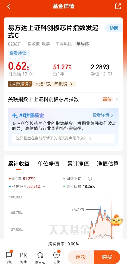 #晒收益# $易方达上证科创板芯片指数发起式A$