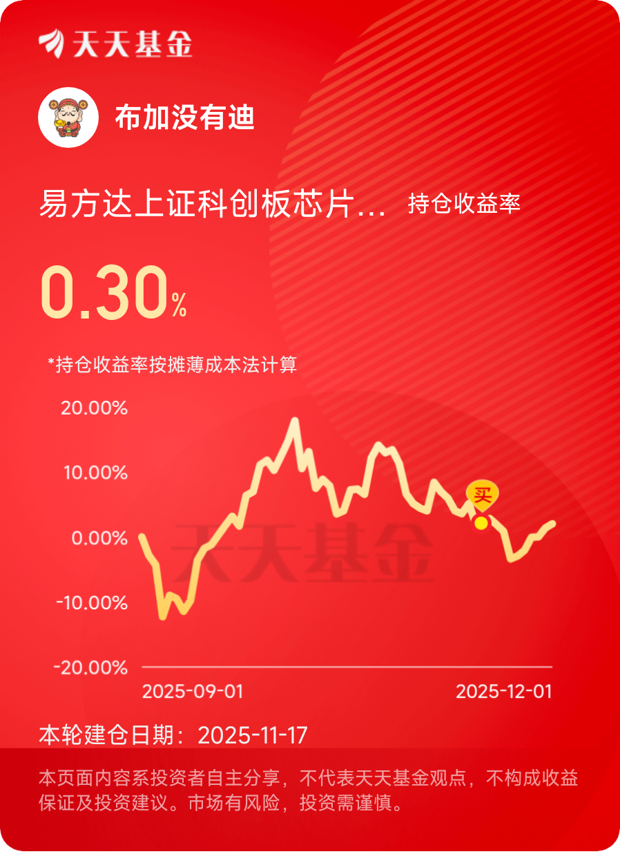 国产芯片赛道正迎政策与需求双重红利,科创板新政为未盈利芯片企业打开融资通道,AI、汽车电子等领域需求持续扩容,国产替代逻辑扎实。易方达上证科创板芯片指数发起式C精准覆盖芯片全产业链龙头,能全面捕捉行业成长红利,且C类份额费率亲民,持有成本更低,是布局硬科技的优质工具。其背后既有国家科技自立自强的战略支撑,又有行业景气度抬升的基本面加持,长期配置价值突出,我已果断买入。@易方达基金 #晒收益#