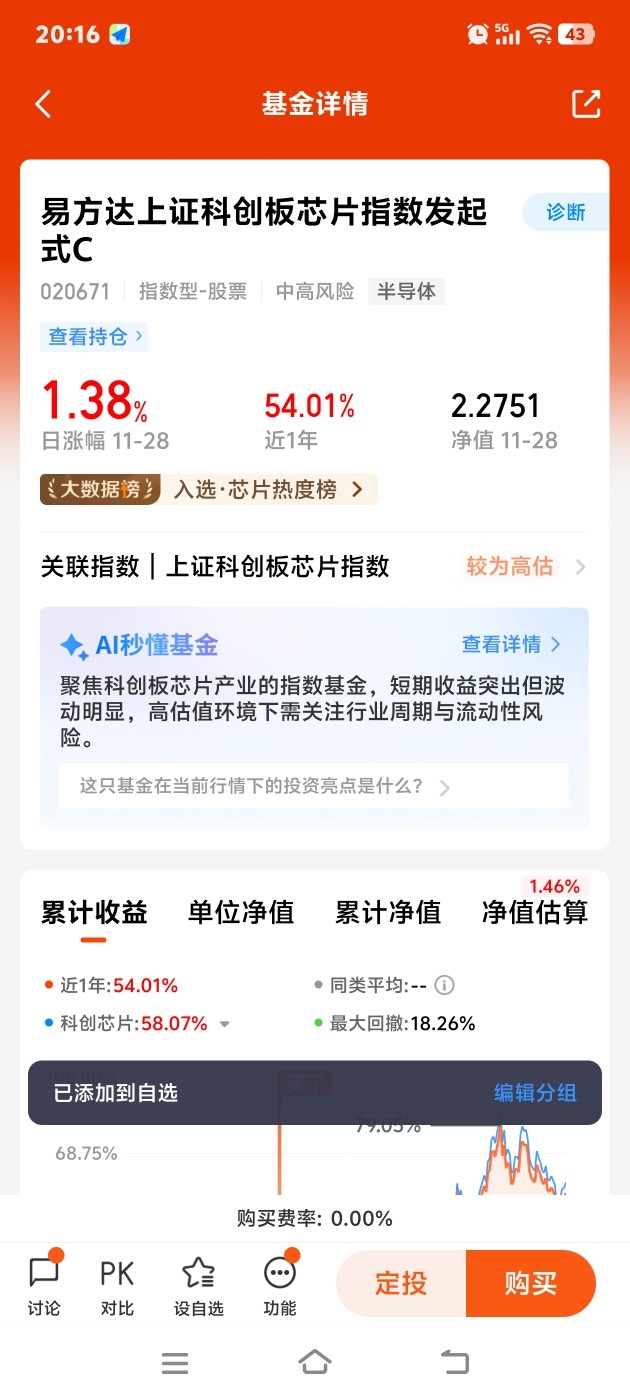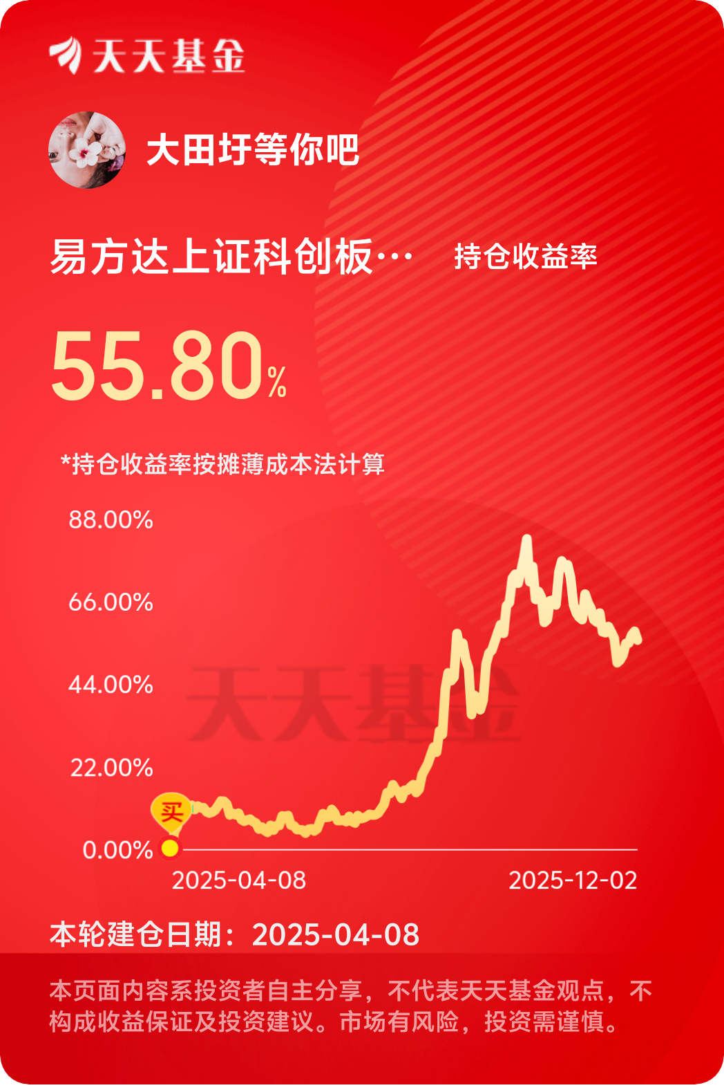 #观点搭子团火热招募中!# #热点话茬# 12月2日,$易方达上证科创板芯片指数发起式C$ (020671)随板块同步震荡回调,当日净值下跌1.49%,最新净值报2.2553元,近一个月累计波动-4.31%,短期调整态势明显 。同日上证科创板芯片指数跌幅超1%,叠加大盘整体回调,板块呈现缩量调整格局,属于良性波动范畴。从长期逻辑看,该基金跟踪的赛道受益于AI算力需求爆发与国产替代深化,产业成长性坚实,近6个月及12个月收益率均超50%,长期价值凸显 。短期震荡恰好释放估值压力,对于着眼长期的投资者而言,当前正是采取分批布局、平滑持仓成本的合适时机,可借助指数化投资把握科技核心赛道机遇。@易方达基金