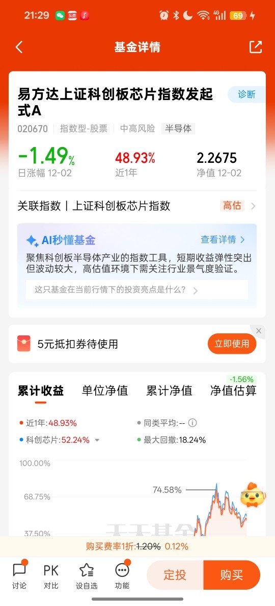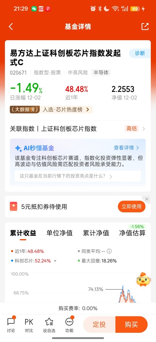 但我认为这次调整更像是健康洗牌。“AI+国产替代”的双轮逻辑没有动摇,设备、材料等环节国产化率仍然较低,成长空间广阔。短期波动正是难得的布局机会,坚持定投,静待花开。$易方达上证科创板芯片指数发起式C$ @易方达基金