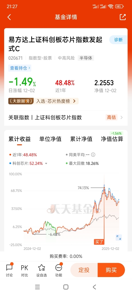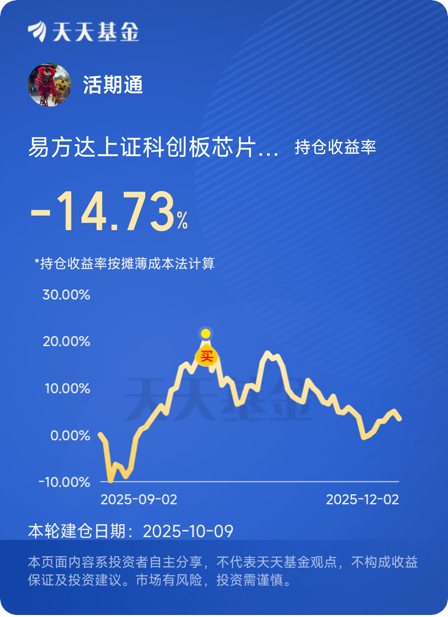 12月2日,第十四天打卡发帖,科创芯片今天下跌1.56%,$易方达上证科创板芯片