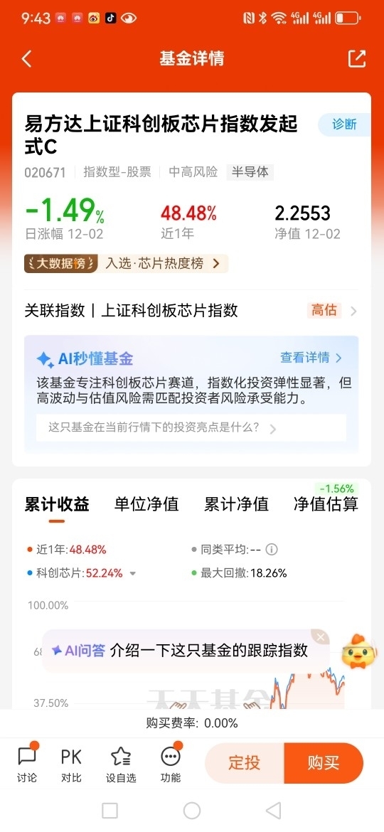打卡第7天,今日市场风云变幻,创业板指以0.69%的跌幅收官,市场整体呈现出一定的调整态势。在此背景下,易方达上证科创板芯片发起式C也未能独善其身,下跌1.49%。这一现象背后,芯片行业与该基金的表现值得深入剖析。