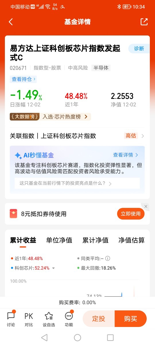 12月2日,今日$易方达上证科创板芯片指数发起式C$跌1.49%,长债快把10月