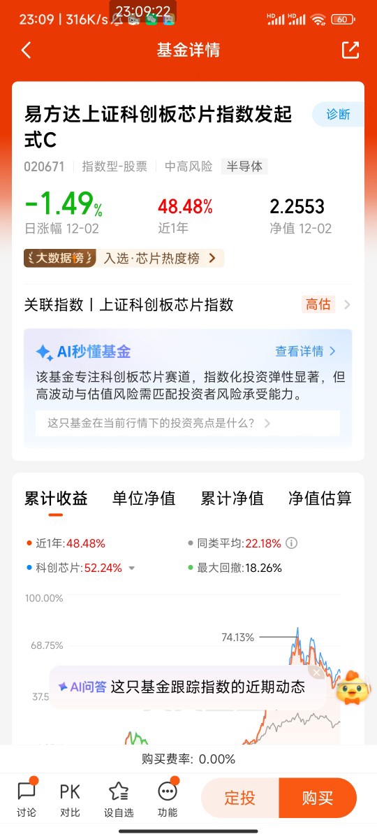 #观点搭子团火热招募中!# #热点话茬# 12月2日,今日芯片指数震荡调整,收盘下跌1.49%,走势上看后市还有望继续反弹。可以说,科创芯片作为中国芯片产业的重要组成部分,不仅在技术上不断取得突破,还在市场表现上展现出强劲的弹性。在政策支持和技术驱动的双重作用下,科创芯片企业有望在未来的市场竞争中占据重要地位,可以重点关注@易方达基金