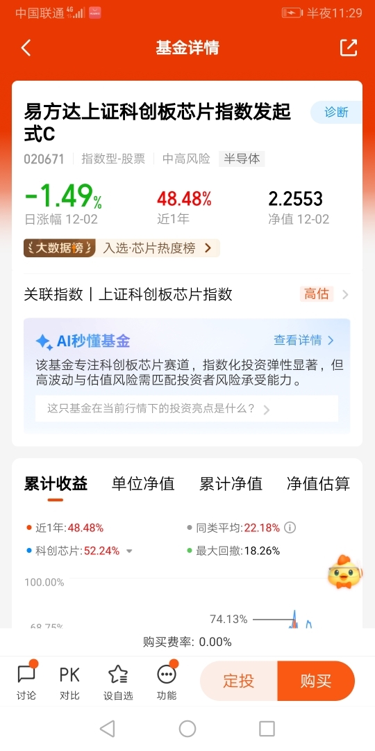 打卡第八天!今天是12月2日,易方达上证科创板芯片指数发起式C(020671)今