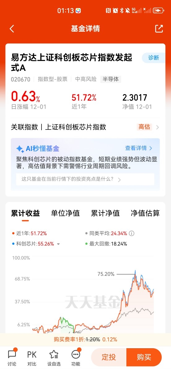 $易方达上证科创板芯片指数发起式C$ 作为跟踪该指数的被动型基金,其表现与指数高度相关。近期板块虽短期调整,但该基金近1周仍累计上涨5.59%,显示科创芯片板块具备较强弹性。