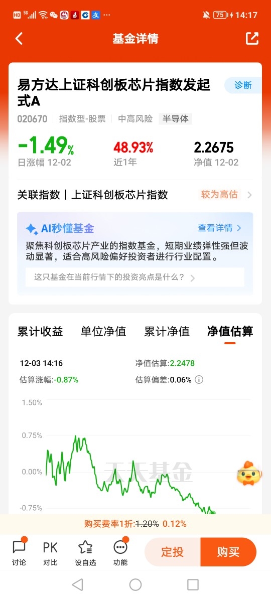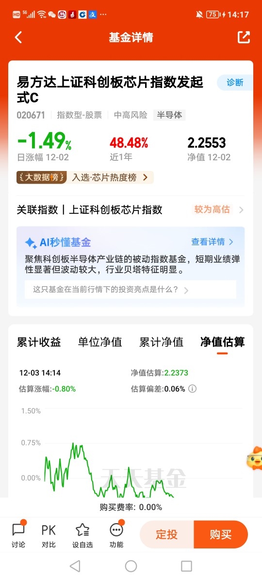 #观点搭子团火热招募中!# #热点话茬# 12月3日打卡第二十天,周三科创芯片下跌不到1%,今天市场跌多涨少,不操作。今天是放量下跌,说明避险情绪比较高,12月3日美股涨了,而我们没有跟涨,有些失望,年底都是偏稳健锁定收益投资居多,所以对于成长性的科技来说抛压严重,如果前期累积收益多还可以,后期高位入场难免浮亏,市场情绪弱多看少操作是明智的,所以今天不动。@易方达基金