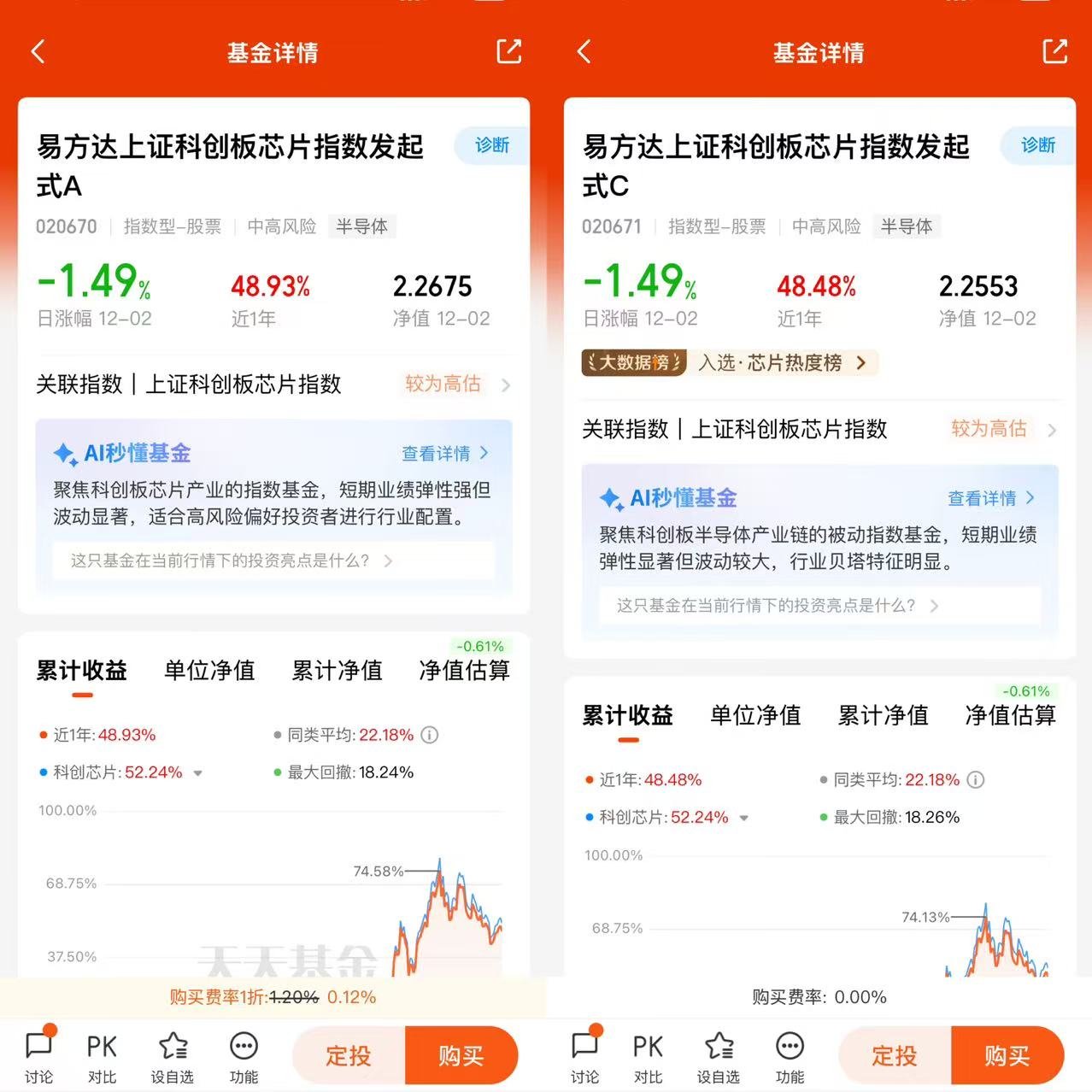 $易方达上证科创板芯片指数发起式C(OTCFUND|020671)$
