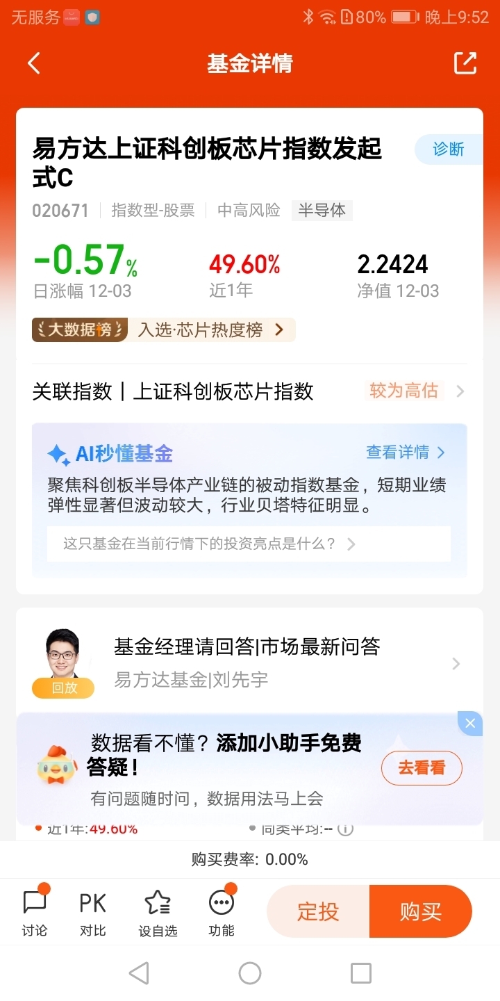 12月3日,今日$易方达上证科创板芯片指数发起式C$下跌0.57%。人形机器人产