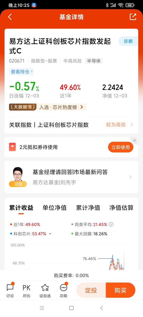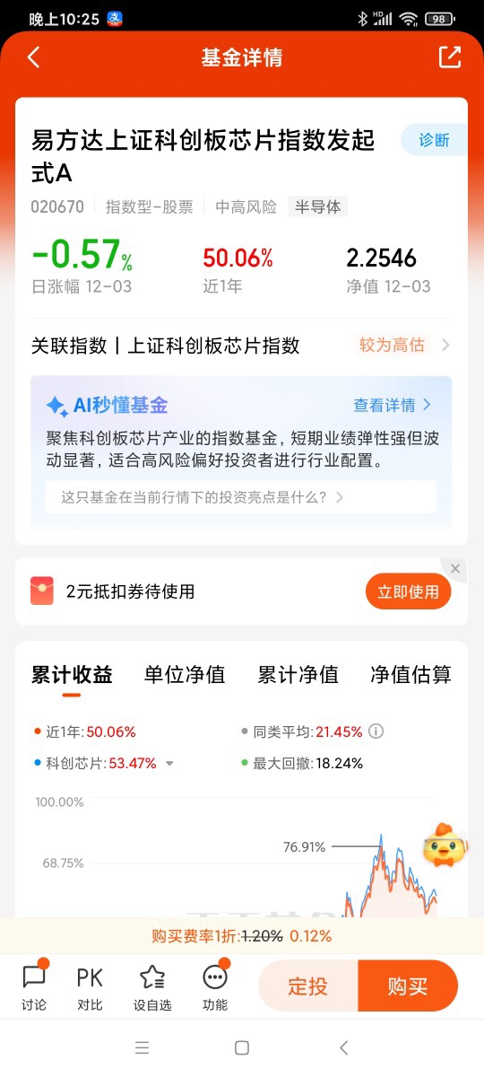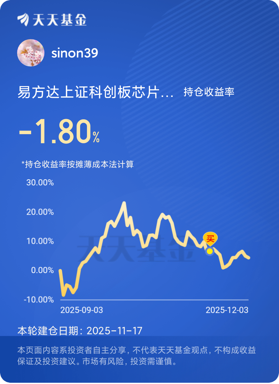 12月3日,今天市场普跌,$易方达上证科创板芯片指数发起式C$跌了0.57%,但