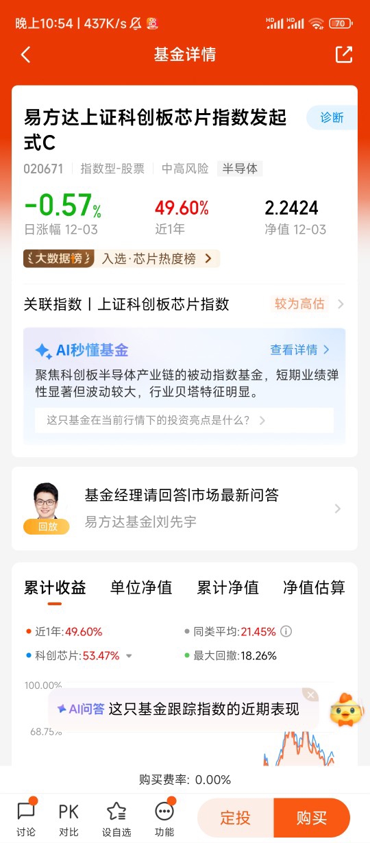 虽然这段时间不算很好,但是从今年整体情况来看,今年的科创板整体的涨幅也在前面,而在这之中的芯片,表现也是可圈可点的!个人认为芯片短期波动不改长期趋势,看好半导体周期复苏和国产替代,可以通过定投参与,控制风险,静待花开。@易方达基金