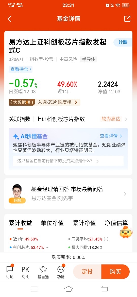 易方达上证科创芯片指数今日跟随大盘小幅回调0.57%,表现略好于同类基金。下跌主因是科技板块整体调整与资金流向转变,但半导体设备等细分领域逆势上涨,显示行业结构性机会依然存在。@易方达基金