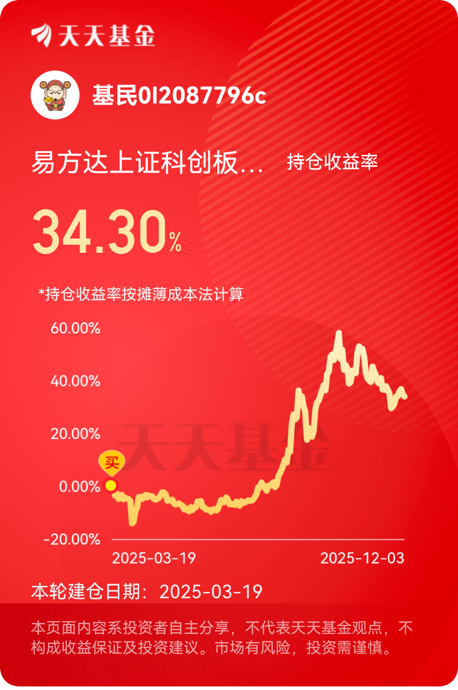 作为易方达上证科创板芯片指数发起式C的长期持有人,这段投资经历着实让人惊喜!持仓以来基金净值稳步向上,短期波动中始终保持向上趋势,实际收益远超预期,完全符合我的长期定投规划。