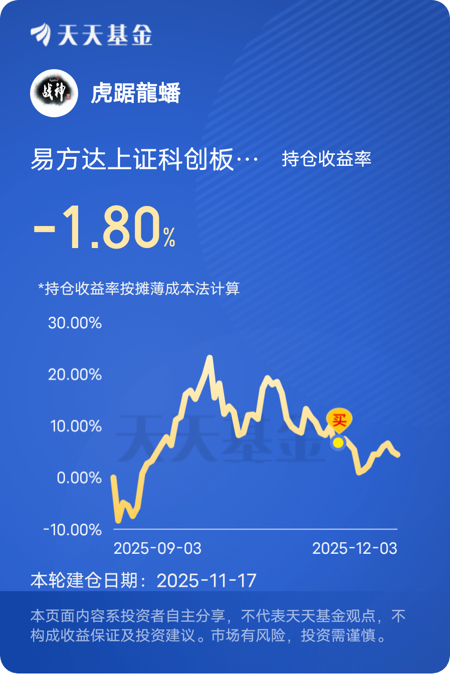 #观点搭子团火热招募中!# #热点话茬#打卡第二十一天,A股市场、芯片板块近期震荡回调,属于正常的技术性整理,是难得的倒车接人机会。基民小虎的个人操作计划:已经开始定投了$易方达上证科创板芯片指数发起式C$ ,将会坚持定投,坚定持有!