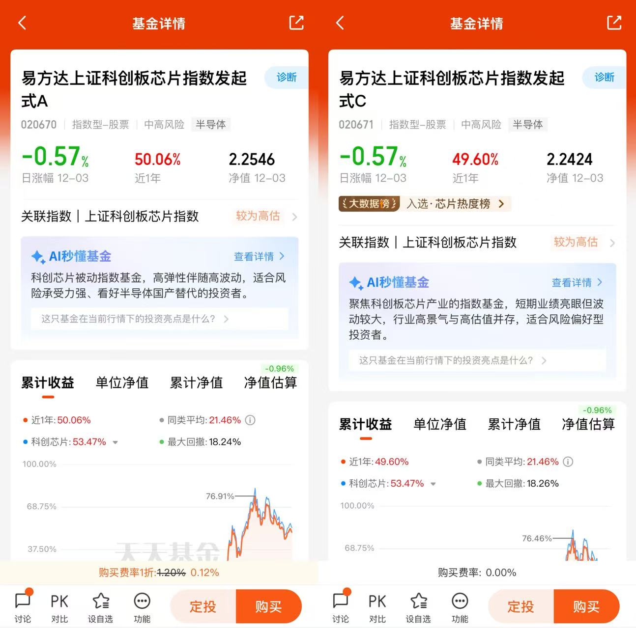 $易方达上证科创板芯片指数发起式C(OTCFUND|020671)$