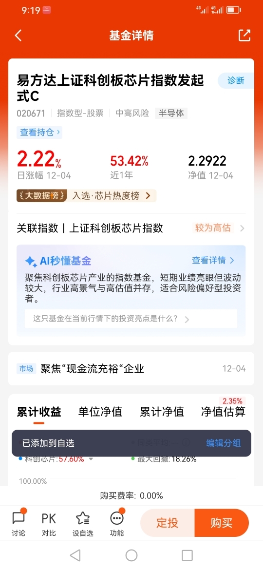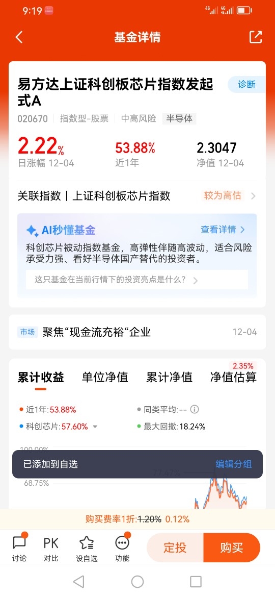 #观点搭子团火热招募中!# #热点话茬# 12月4日打卡第11天,今日芯片板块内大部分的股票都是涨的,其实看我国的芯片行业是否进步,关键看光刻机,它的制造难度是很大的,而且一台优质的光刻机是很稀缺的资源,而从最近几年的情况来看,其实我们只要看与光刻机有关的上市公司的股价表现,就知道我们的光刻机制造工艺,已取得了长足的进步了。因此我选择了易方达上证科创板芯片指数发起式C(020671),因为易方达基金在投资领域相当专业。@易方达基金