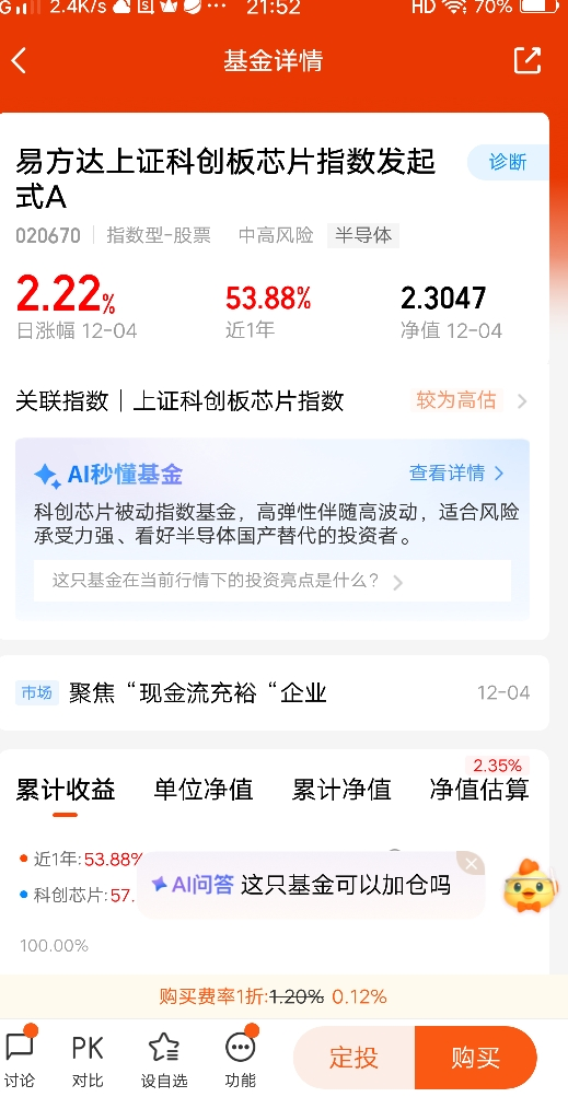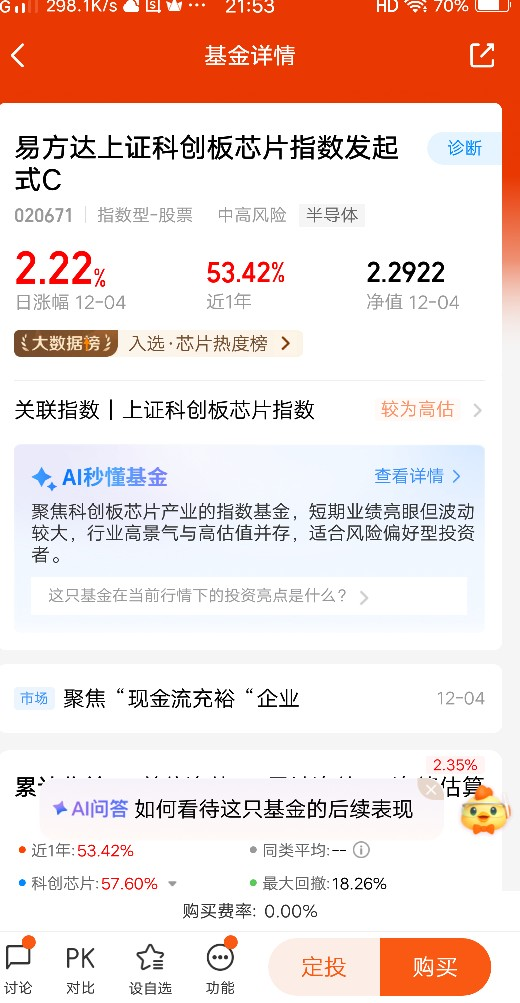 12月4日,芯片指数上涨2.35%。A股三大指数今日涨跌不一,截止收盘,沪指跌0.06%。深证成指涨0.40%。创业板涨1.01。行业板块多数收跌,机器人执行器概念股大涨。特朗普政府有加速推进机器人技术发展,摩尔线程和沐曦股份GPU公司IPO有新进展。$易方达上证科创板芯片指数发起式C$ @易方达基金