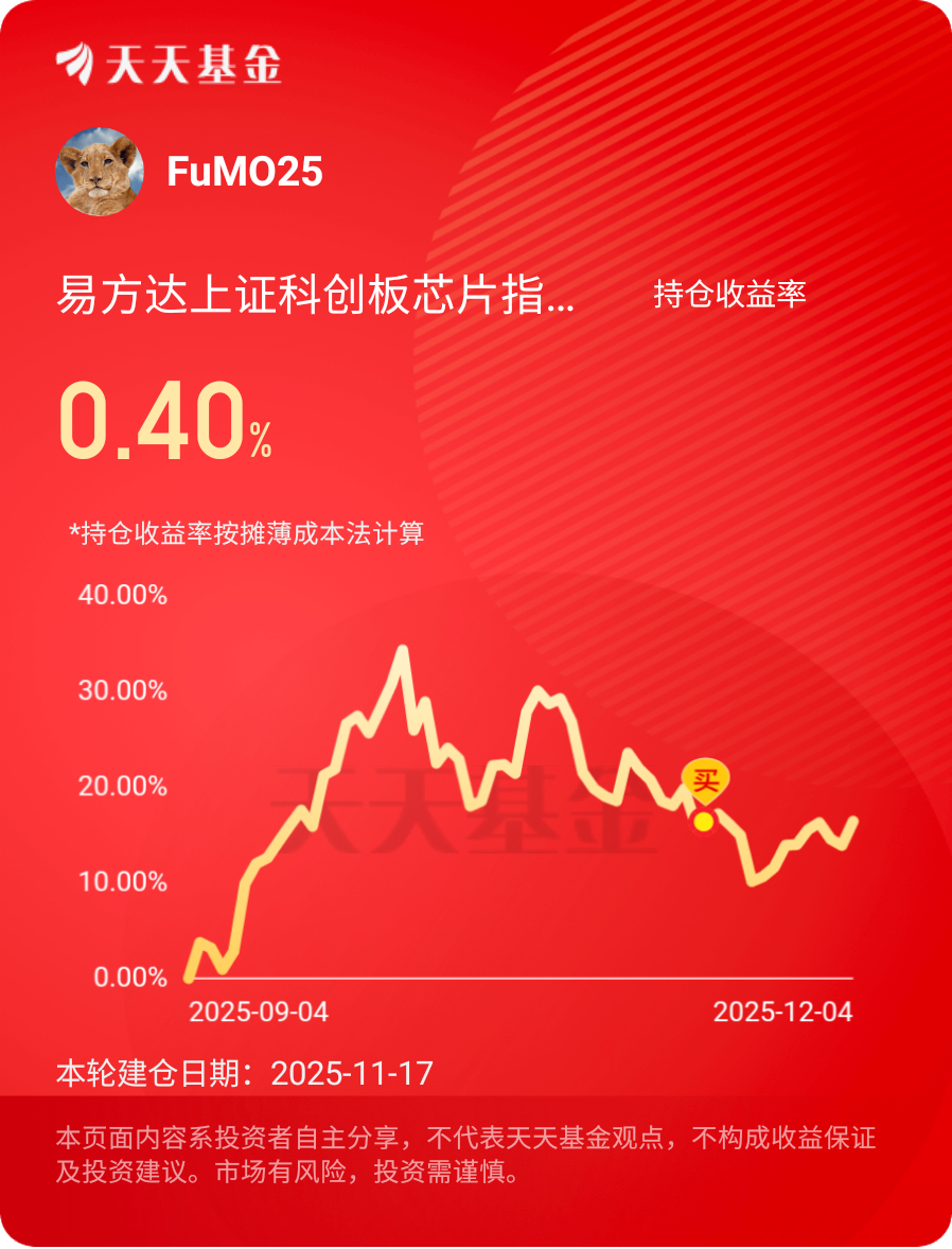 #观点搭子团火热招募中!# #热点话茬# 12月4日,今天又绿了近4000家,芯片板块逆势收红,行业整体仍然处于向上的趋势当中,再加上本轮科技成长行情后市仍有看点,我认为$易方达上证科创板芯片指数发起式C$ 仍然可以继续持有。芯片行业的机会主要体现在“从北美向国产转移”的国产替代+AI引领科技的大逻辑当中。毕竟,国产AI大模型想大幅跃迁,提升算力是抄近道的选择,因此国产AI与国产芯片将加速整体崛起。而在政策管控下,即便是出于安全性的考虑,未来国内企业也会越来越多考虑使用国产芯片,所以长期来看仍然看好芯片的后市。@易方达基金