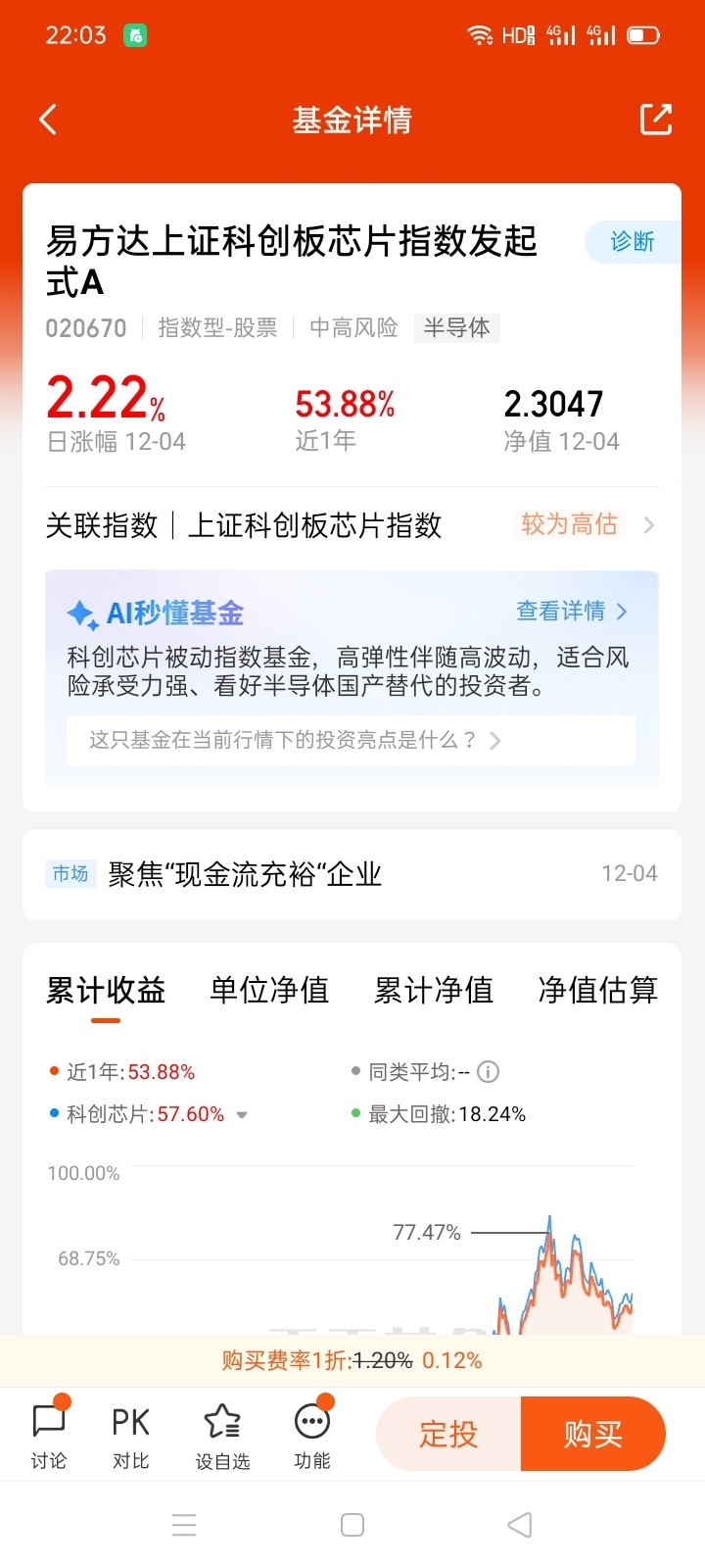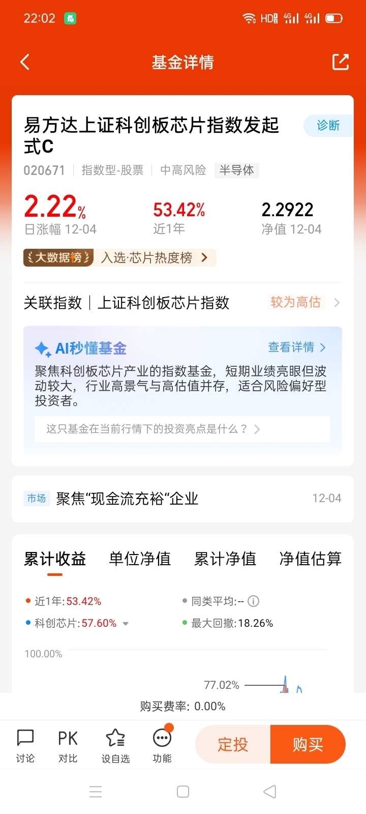 12月4日,易方达上证科创板芯片指数发起式C(020671)表现亮眼,净值上涨2.22%,显著跑赢市场主要指数,展现出科创板芯片板块的强劲活力。这一涨势背后,是盘面与消息面的双重驱动。