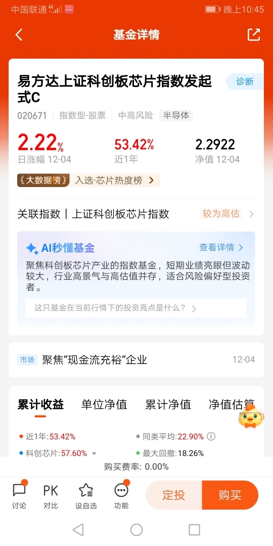 打卡第十天!今天是12月4日,易方达上证科创板芯片指数发起式C(020671)今