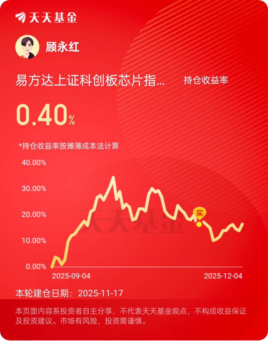 #观点搭子团火热招募中!# #热点话茬#打卡第二十二天,在央妈10000亿逆回购利好加持下,今天早盘A股三大指数震荡上涨,芯片板块昨天涨幅较大,今天上午窄幅震荡,下午有望继续上行。晒晒个人操作计划:我已经定投了$易方达上证科创板芯片指数发起式C$ ,将会坚持定投,坚定持有,获取更好的长期投资回报!
