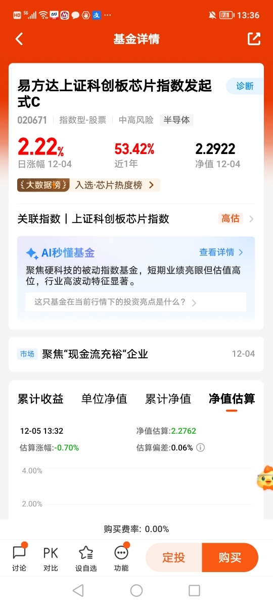 12月5日打卡第二十二天最后一天打卡啦,周五科创芯片跌幅不到1%,今日没加仓