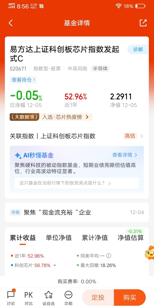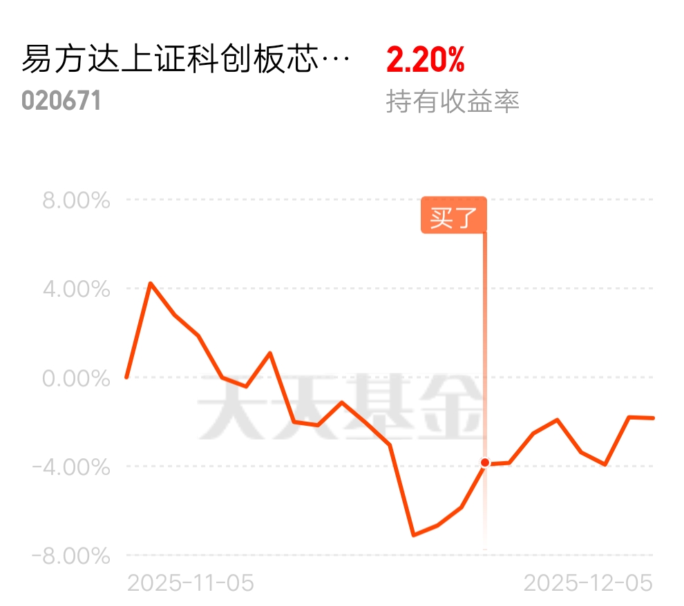 #观点搭子团火热招募中!# #热点话茬# 12月5日收盘,上证科创板芯片指数下跌0.31%。见证了板块的回调与反弹,也深入探讨了基金的投资价值与风险。总结下来,$易方达上证科创板芯片指数发起式C$ 基金的核心优势在于精准聚焦高景气赛道,背靠强大的基金公司投研实力,同时A/C类份额的灵活设计满足了不同投资者需求。虽然面临估值高、波动大的风险,但在AI算力爆发与国产替代的双重催化下,芯片赛道的长期机遇不可忽视。通过这些天的交流,我更加坚定了长期布局的信心,也学到了很多搭子们的理性投资思路。未来会继续关注存储芯片涨价动态与行业政策变化,和各位科技搭子一起紧跟产业趋势,在"芯"征程中收获成长与收益!@易方达基金 $易方达上证科创板芯片指数发起式C$