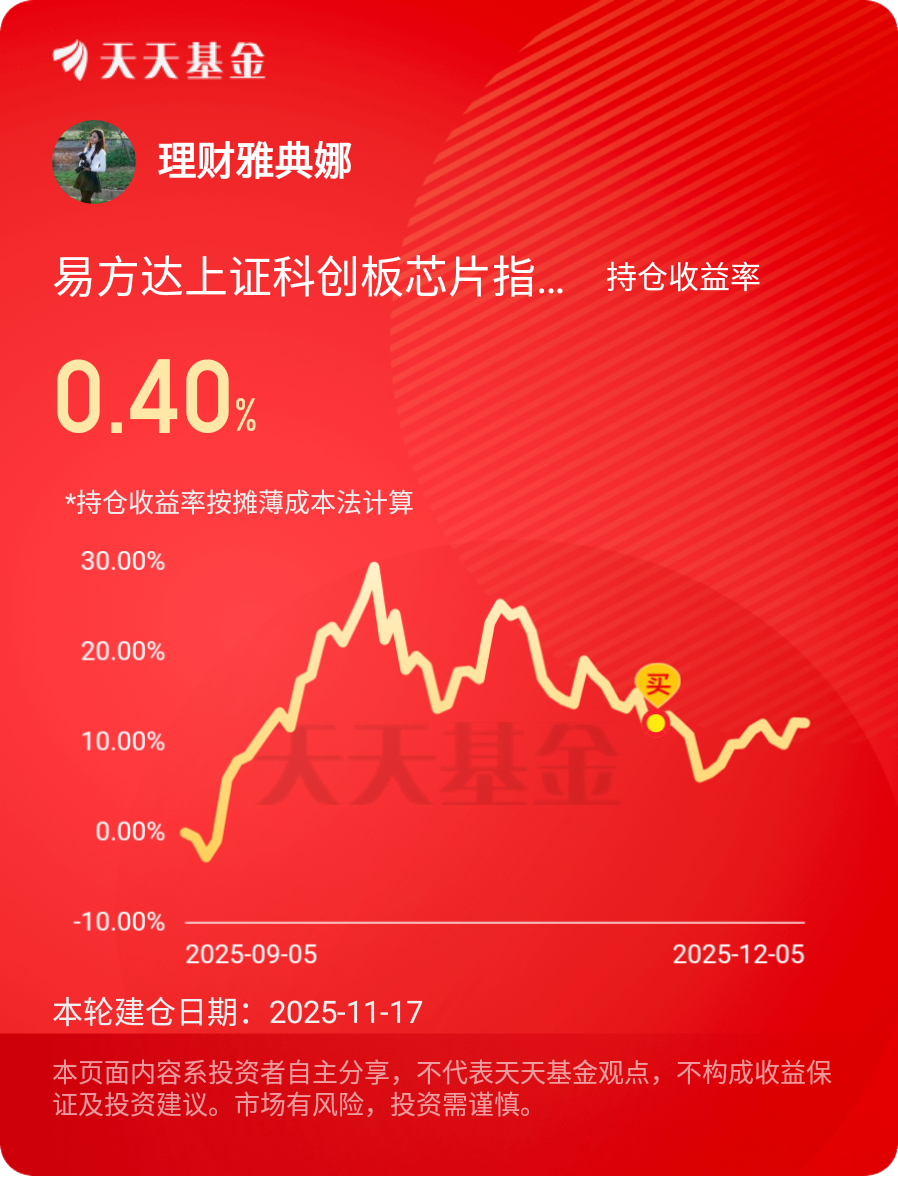 #热点话茬# #观点搭子团火热招募中!# 12月5日,今天芯片板块震荡,$易方达上证科创板芯片指数发起式C$微跌0.05%。作为新买入的持有人,我觉得短期调整不用太担心。存储芯片正在涨价,国内外巨头都在猛攻AI算力,这为芯片需求托了底。更让我看好的是未来,像人形机器人这种大趋势,光是里面用的半导体,到2045年市场可能就有3050亿美元。这只基金跟踪的科创板芯片指数,正好包涵了做AI处理器、传感器这些核心环节的公司。行情或许会有反复,但产业升级和国产替代的大方向不会变,我选择保持关注,看长远。#晒收益#