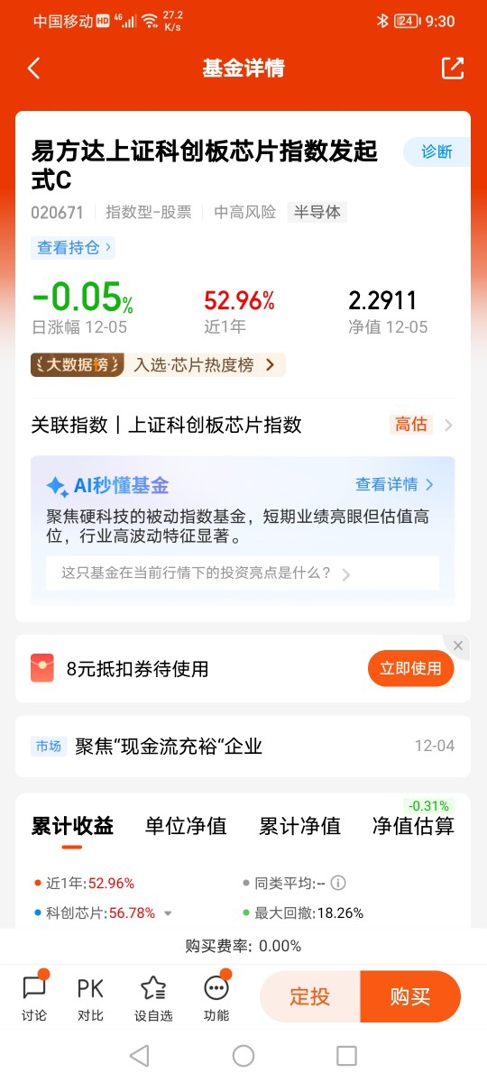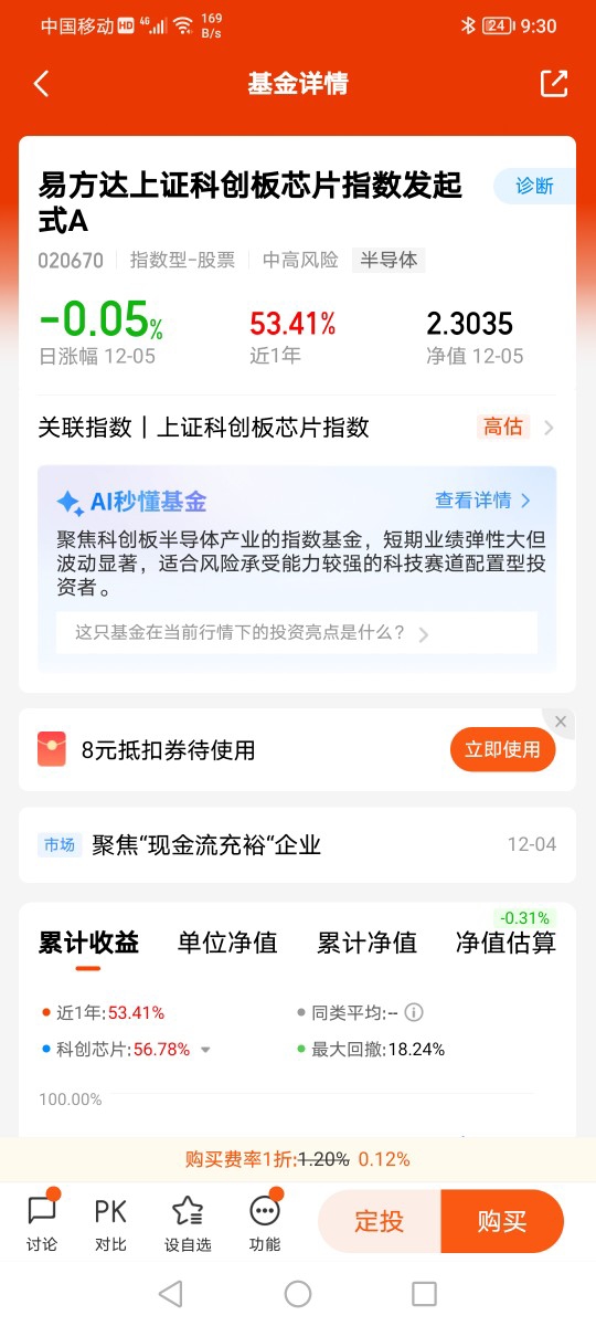 12月5日,今天大盘放量站上3900,$易方达上证科创板芯片指数发起式C$微绿0