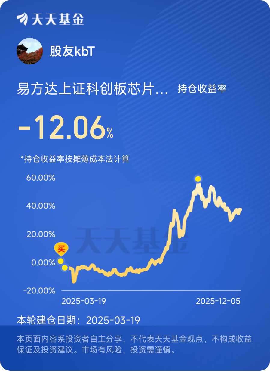 12月5日,第十六天打卡发帖,$易方达上证科创板芯片指数发起式C$今天跌0.05